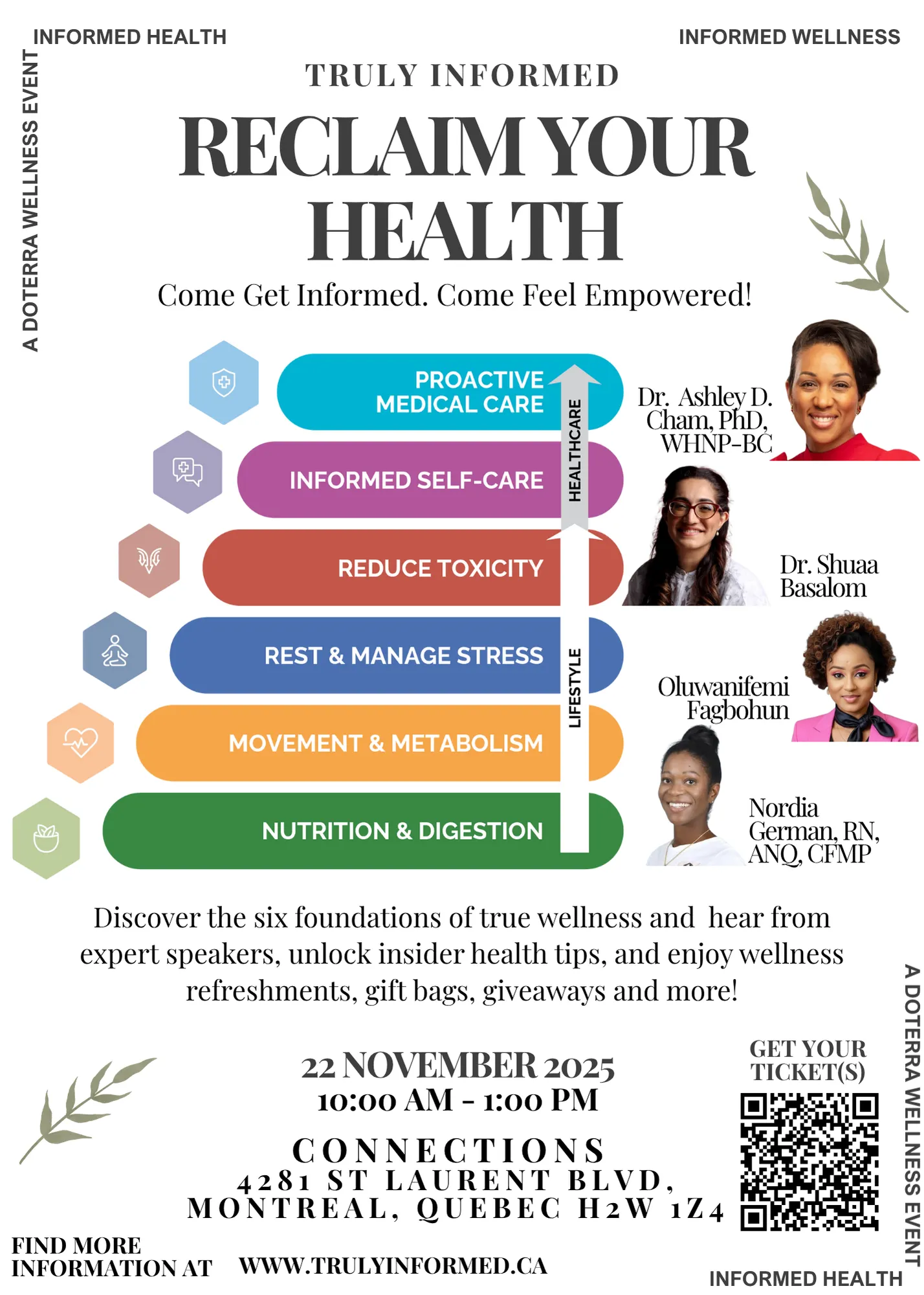 Reclaim Your Health is a transformative 3-hour wellness experience designed to help you return to the foundations of true health. This event will provide you with practical tools to strengthen your well-being, while also teaching you how to build a more productive relationship with your primary care provider (doctor, nurse, or specialist).